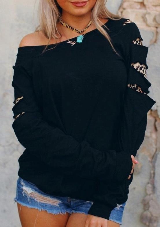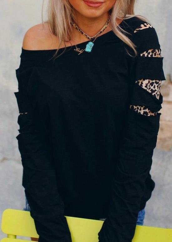 HomeHoodies & Sweatshirts Leopard One Shoulder Sweatshirt without Necklace