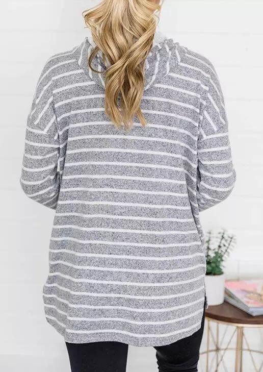 Striped Drawstring Slit Loose Hoodie – Light Grey