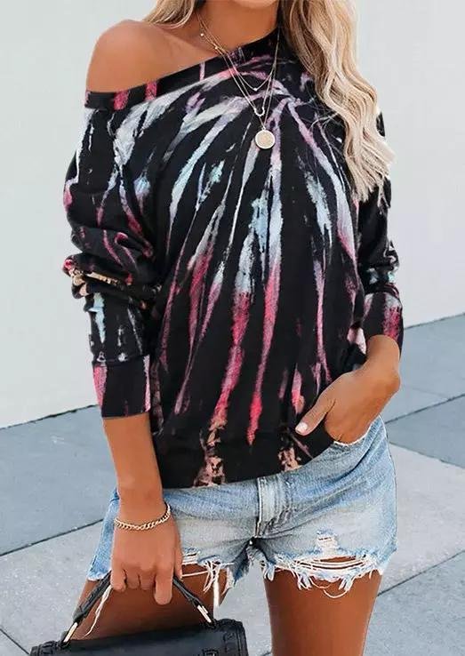 Tie Dye Long Sleeve O-Neck Sweatshirt – Black